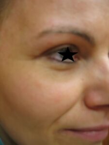 - a szem körüli mimikai izom megvastagodása, melyet a bőr alatt mintegy húrszerűen megjelenő izomrostok okoznak