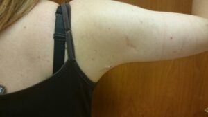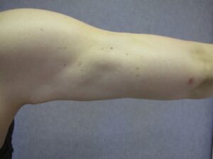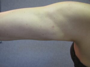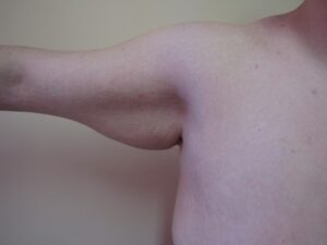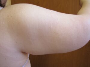 A második stádiumban a hónaljárok alatt, a felkar felső harmadában már enyhe bőrfelesleg észlelhető, általában enyhe csüngéssel együtt.