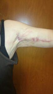 Zsírszívás a kar teljes hosszában, és a bőr-zsír felesleg kimetszése kötelező.